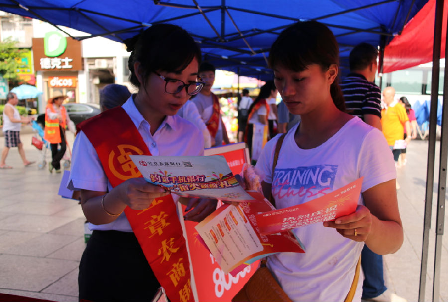 活动现场,宜章农商银行采取悬挂横幅、摆放宣传展板、设立咨询台、发放产品资料、现场解说、上门宣教等方式,重点宣传金融精准扶贫政策、农商行扶贫贷款产品和服务、贫困农户信用等级评定标准、贫困农户贷款流程、金融支持扶贫特色产业工作典型等内容,让更多群众知晓小额信用贷款政策,享受到产业扶贫普惠金融服务。此外,支行以80个金融服务站为平台,积极开展金融精准扶贫政策、产品和基础金融知识宣传。