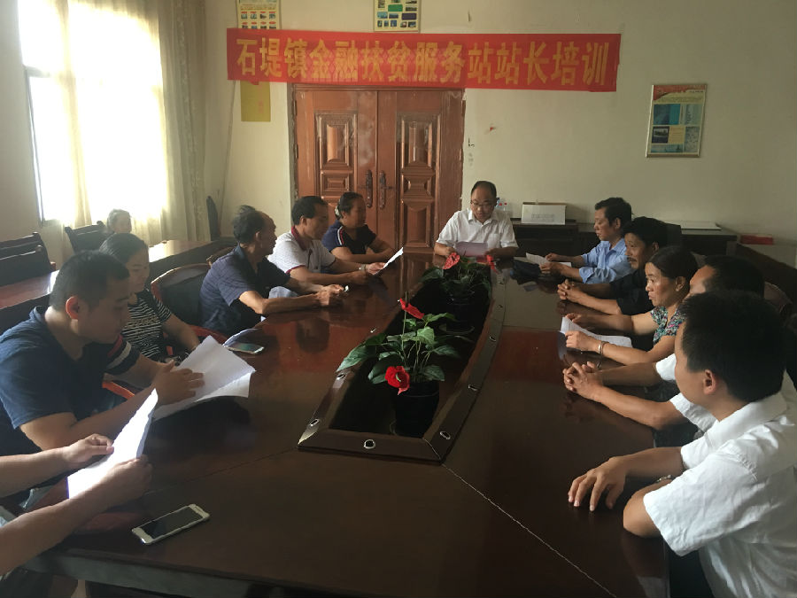 石堤镇金融扶贫服务站站长培训现场