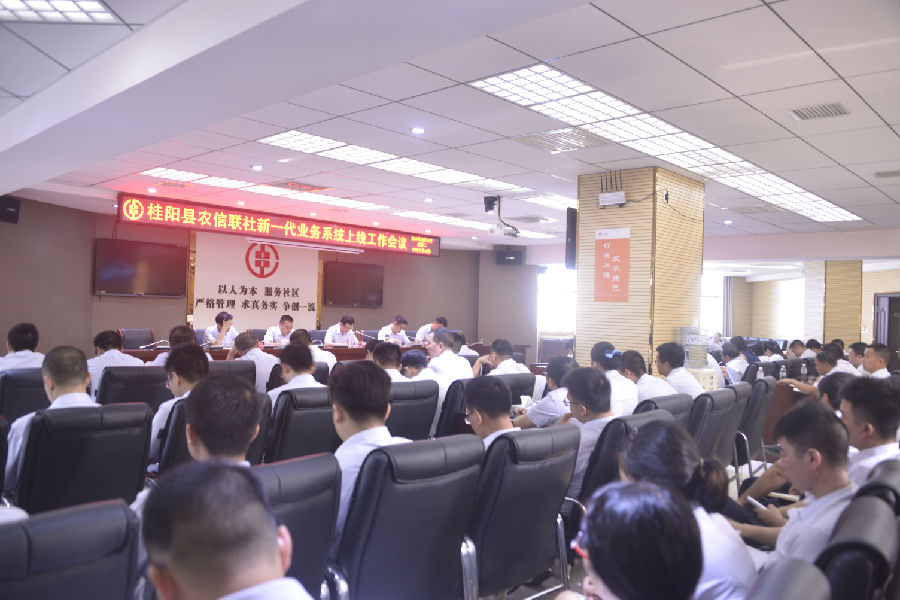 为传达贯彻省联社、郴州办事处工作会议精神,确保新一代业务系统顺利上线,桂阳县联社于8月22日上午组织召开了新一代业务系统上线工作会议,班子成员、主任助理、部室负责人、各信用社主任和会计等100余人参会。