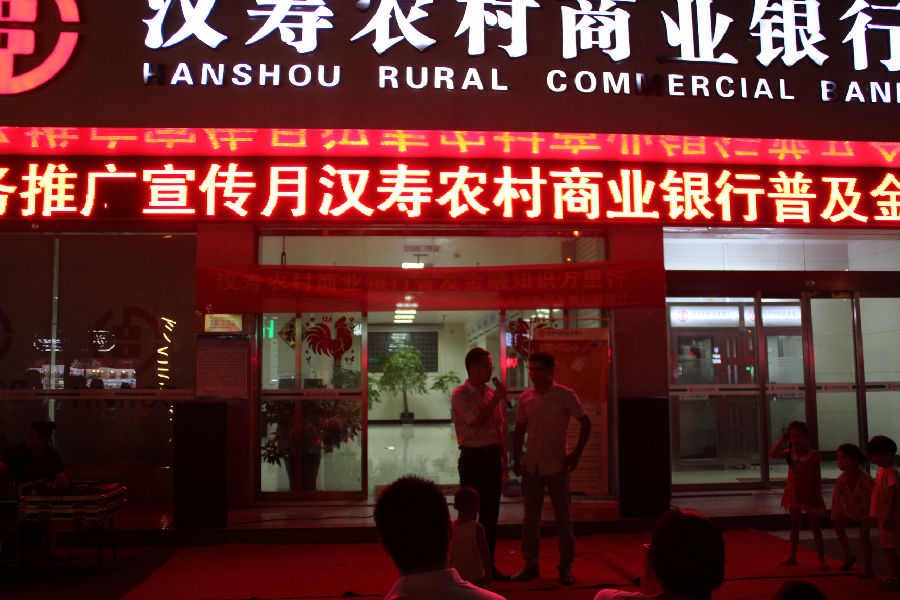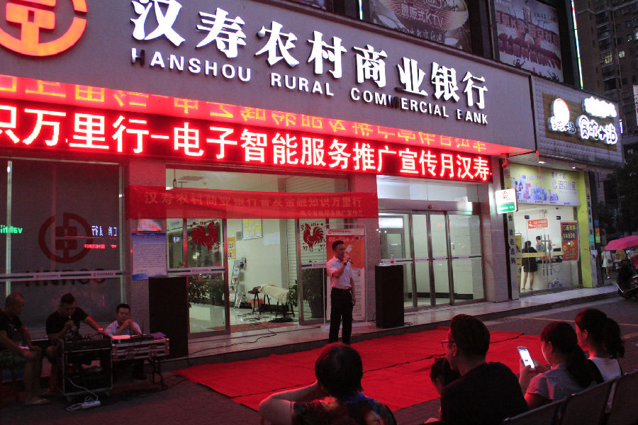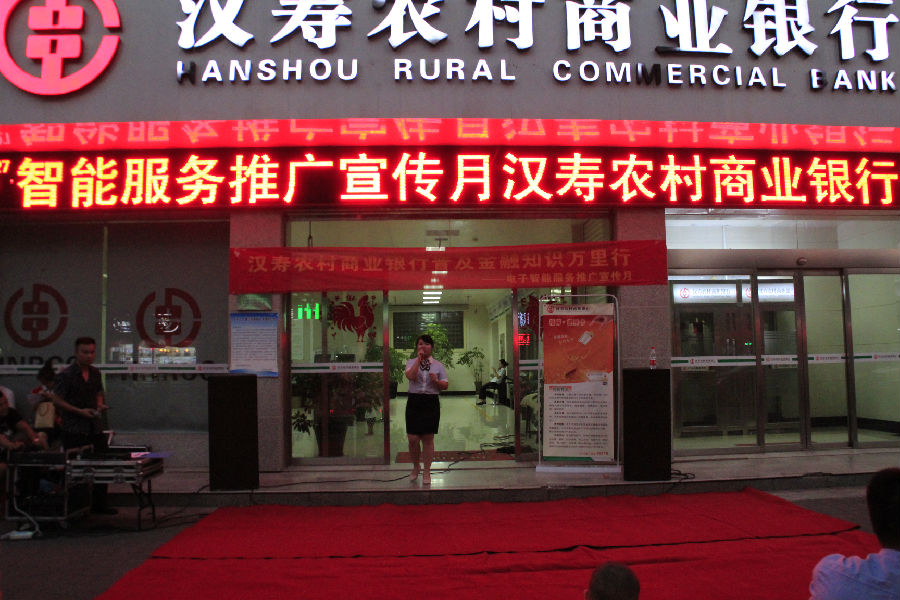 为推进公众金融教育普及工作,构建和谐的金融消费关系和良好金融生态环境,8月27日,汉寿农商银行在县芙蓉世纪城附近开展以“电子智能服务推广”为主题的路演宣传活动。