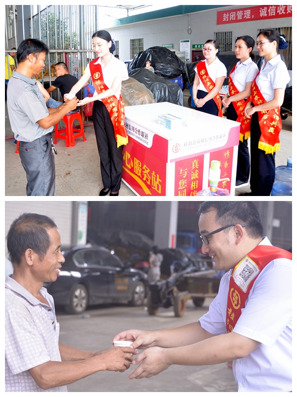桂阳县是全国烤烟大县,素有“烤烟王国”之称,每年8月、9月是全县烤烟收购季节,2017年全县烤烟种植面积21万亩,预计收购将达55.8万担,预计创造税收1.76亿元。烤烟收购期间,桂阳县联社抽调20余名骨干力量组成六支爱心服务队,深入到各乡镇烟草站开展爱心助农服务,为烟农提供饮用水、西瓜以及扇子、风油精等便民物品,还为烟农开展防电信诈骗、反假币、账户安全等金融知识宣传。这是该联社“访客户、问需求、优服务”的又一项亮点措施。