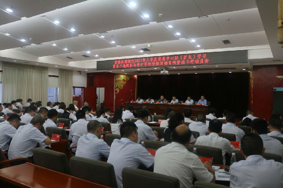 9月5日下午,常德农商银行于八楼会议室召开了2017年三季度党委中心组(扩大)学习暨员工违规参与涉矿等经营性活动专项整治工作动员会。该行行领导,总行机关部室正副总经理,营业部、鼎城支行班子成员及部室主要负责人,各直属支行、二级支行行长共计96人参加了会议。