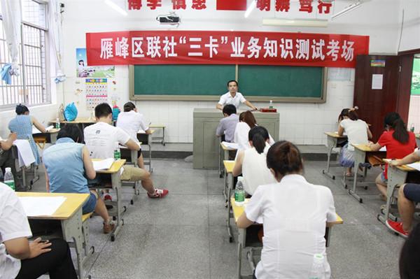 7月26日晚,衡阳雁峰区联社组织全体临柜人员进行“三卡”业务知识测试。本次测试采取闭卷考试的形式,通过自主命题、集体阅卷,严格要求每一个环节,确保达到以考促学的目的。测试成绩出来后,在全社进行了通报,对达到合格线的员工给予奖励,对考试不合格的员工给予通报批评并要求补考。 通过测试,提高了员工学习的积极性,为“三卡”业务的推广打下了基础。