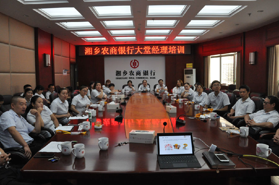 为进一步强化金融服务意识,提高大堂服务水平,提升农商银行品牌和形象。9月17日,湘乡农商银行在二楼会议室举办大堂经理培训班,本次培训由电子银行部牵头,特邀广州睿银培训公司祁江教授现场授课,总行副行长王学军、电子银行部负责人以及各支行大堂经理共计30余人参加了培训。