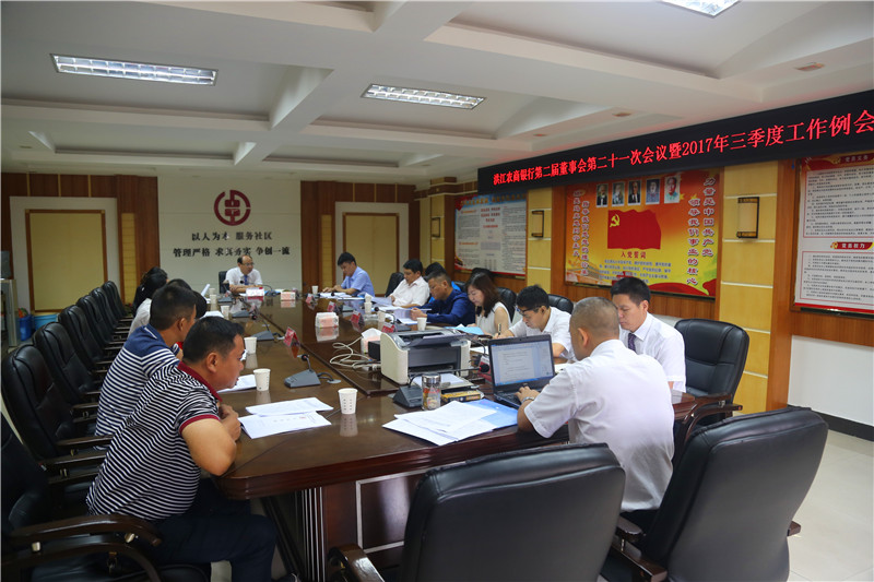 近日,洪江农商银行在总行二楼会议室召开第二届董事会第二十一次会议。会议由董事长蒋松平主持,董事会成员共计9人参加。中国银监会怀化监管分局监管员杨秀珍及监事会成员列席会议。