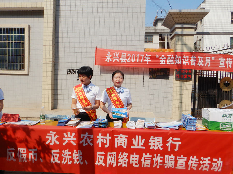 今年以来,永兴农商银行不断通过深入基层现场宣传、网点展示宣传和微信公众号宣传等方式开展了多渠道、多层次的金融知识宣传活动,向社会公众普及金融安全知识,切实让公众在宣传活动中受益,增强了社会公众对金融环境的信心。