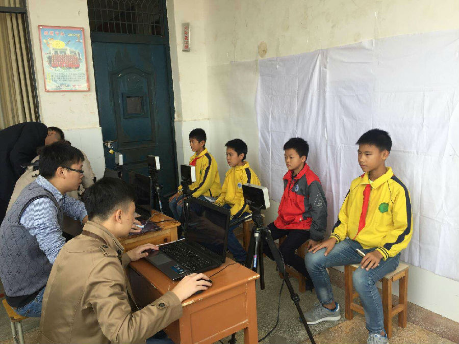 10月23日,宜章农商银行9名工作人员携带电脑深入县四完小学教室采集学生图像信息,标志该行启动了全县4万余人在校学生的社保卡制卡图像数据采集工作。