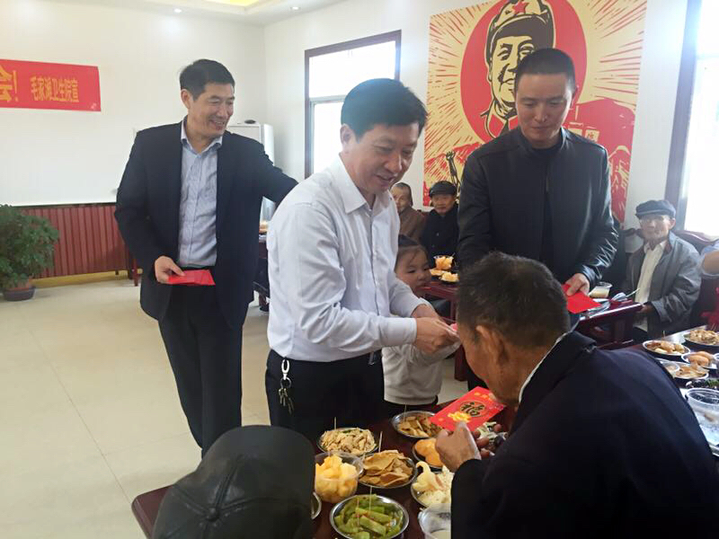 董事长蔡国民与敬老院老人开心交谈