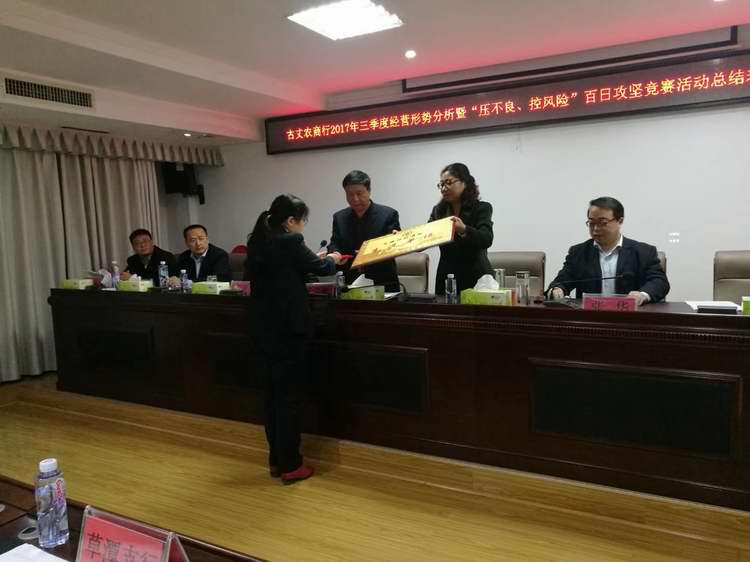 会议对古丈农商银行第三季度经营情况进行了通报,对全行经营形势进行了全面分析,对“压不良、控风险”百日攻坚竞赛活动进行了认真总结,对下阶段工作进行了具体安排。会议要求,一是进一步统一思想,凝心聚力,以党的十九大精神为指引,落实工作措施,确保全年经营目标的完成。二是突出重点、精准发力,狠抓下阶段各项工作。要继续抓好资金组织,主动对接重点项目、提升服务质量,持续抓好风险防控,守住底线,着力推动不良贷款的清收形成常态。加大收息和电子银行业务工作推动力度,扎实抓好新一代业务系统上线工作,确保顺利上线。狠抓金融精准扶贫工作,主动作为,积极参与脱贫攻坚,抓好建档立卡贫困农户的小额信用贷款发放和两卡两折的发放工作。三是转变作风、持续发力,切实加强作风建设,努力抓好党的建设,以“两学一做”活动带动业务发展。