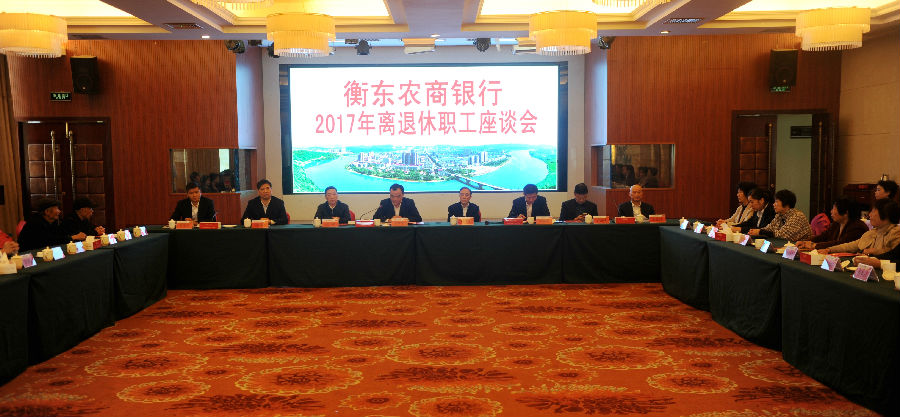 为弘扬尊老敬老的传统美德,在传统的九九重阳节到来之际,衡东农商银行在恒瑞大酒店召开离退休职工座谈会。总行党委班子成员、副协理员、行长助理、各部门负责人与100余名退休老同志欢聚一堂,叙述深厚情谊,畅谈衡东农商银行发展大计。