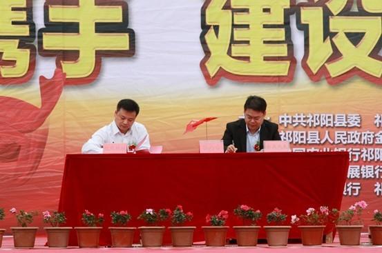 9月26日,祁阳县委、县政府举办了祁阳县首届金融产品推介会,祁阳联社在与县政府签订了《发展特色县域经济强县战略合作协议》,并与湖南自然韵黑茶科技有限公司、祁阳华鑫建材有限公司等13家小微企业签约重点项目10个,签约金额1.73亿元。