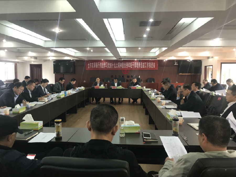 会上,办事处党组成员、副主任胡三立传达了省联社张志军理事长在全省农村信用社优秀年轻干部培养选拔工作推进会上的讲话精神。办事处党组书记、主任周文学作了讲话。他指出,要着眼长远,立足当前,深刻认识培养选拔优秀年轻干部的重要性和紧迫性。当前,全市农商银行加强、改进、创新优秀年轻干部培养选拔工作,可谓是大势所趋、形势所逼、事业所需、职责所在。各法人行要立足自身实际,紧扣时代脉搏,从全局和战略的高度,深刻认识培养选拔优秀年轻干部的重要性和紧迫性。他强调,要更新观念、抓住关键,着力加强改进创新优秀年轻干部培养选拔工作,切实把握好培养选拔年轻干部的总体要求、基本目标、工作举措,重点要从“突出导向、把握原则、善于发现、培养历练、大胆启用、压实责任、创造氛围”等七个关键举措入手做好培养选拔年轻干部工作。他要求,要提高站位,强化担当,切实加强领导班子和领导干部队伍建设。各法人行班子成员要结合学习贯彻党的十九大精神,提高政治站位、增强工作本领、改进工作作风、强化责任担当、坚守规矩底线。