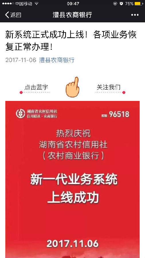 在湖南省农村信用社(农村商业银行)新一代业务系统上线成功之际,在经历了两个昼夜加班加点的上线测试后,澧县农商银行紧锣密鼓、鼓足干劲,“四个到位”迅速启动“新一代”正式成功上线宣传工作。