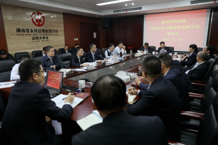 11月2日,益阳办事处召开全市农村信用社优秀干部培养选拔工作推进会。办事处领导、各科室负责人、各农商行董事长、分管人事工作的党委成员、人力资源部经理参加会议。