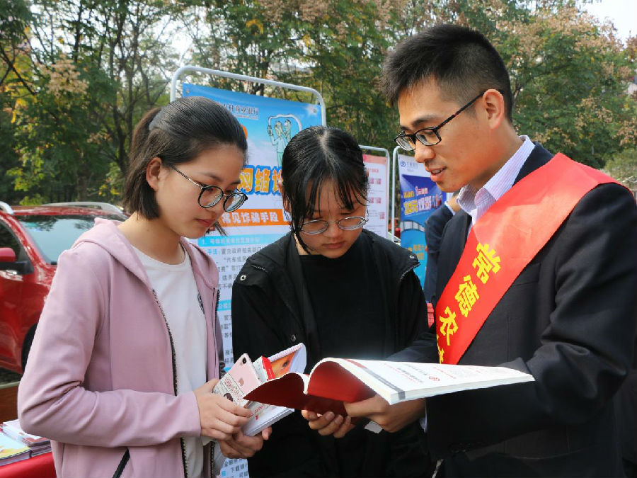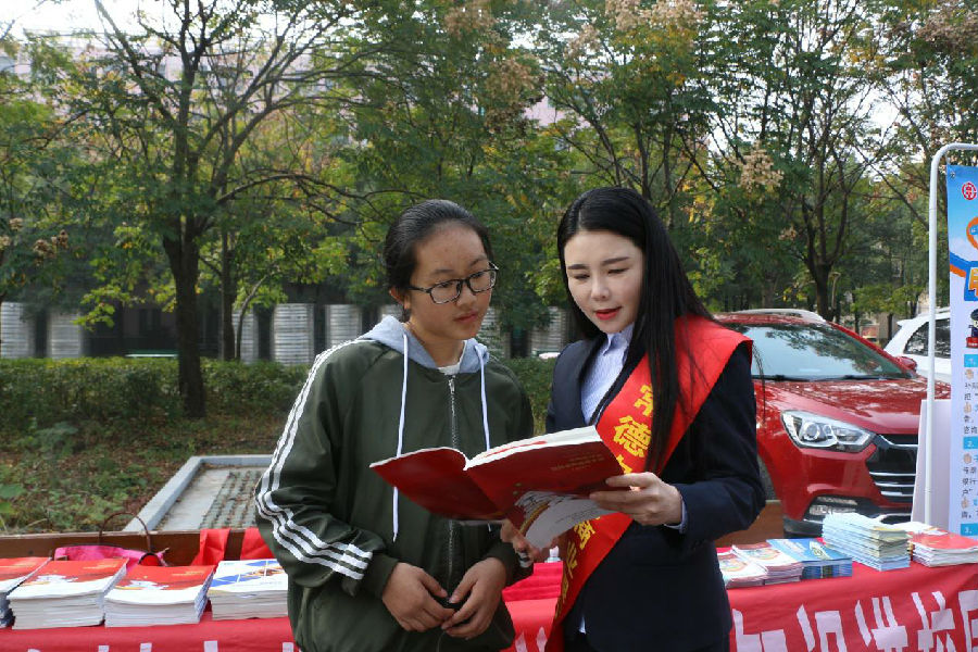 11月4日上午,该行监事长闫劲松带领五名精通防范金融诈骗、电信诈骗知识的员工来到常德高职院进行金融知识宣讲。