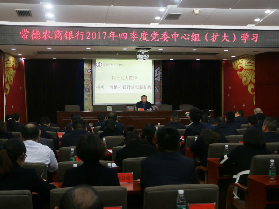 11月7日晚,常德农商银行进行了四季度党委中心组(扩大)集中学习,深入学习贯彻党的十九大精神。会议由党委书记、董事长陆化同志主持,机关全体员工、全行各党支部委员150余人参与学习。