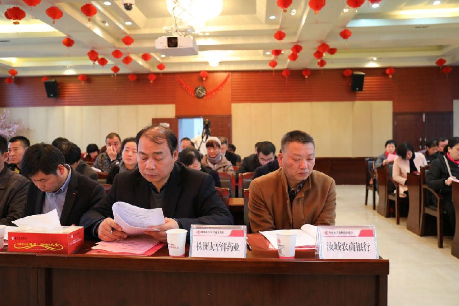 11月20日,永兴农商银行第一届股东大会第三次(临时)会议、第一届董事会第九次会议于该行总行办公大楼胜利召开,郴州银监分局合非科副科长谢军、主监管员欧阳植坚出席会议,永兴农商银行58位股东代表参加会议。