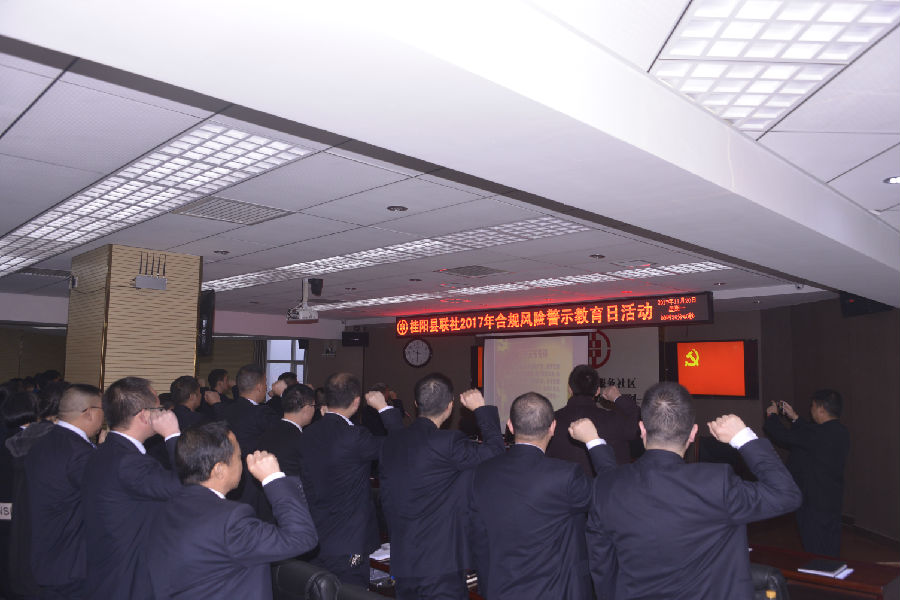 11月20日,桂阳县联社组织开展了合规风险警示教育日活动,召开了学习贯彻党的十九大精神大会,旨在加强员工的学习教育,助推各项业务发展。班子成员、主任助理、各党支部书记、各部室负责人、各信用社主任参加活动和会议。