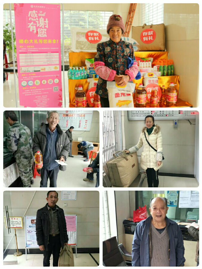 为全力抓好年终目标冲刺工作,宜章农商银行借助感恩节有利时机,以感恩客户作为营销活动的切入点,推出“感谢有您,暖心好礼等您来拿”的情感营销口号,11月23日至12月31日期间存款有礼,凡来宜章农商银行存入0.5万元、1万元、3万元、5万元、8万元、10万元、20万元、30万元以上档次定期存款的客户,可相应获得米、油、冬被、枕芯、法兰绒毯等礼品;开户有礼,客户新开户卡折并开通手机银行完成三笔以上动账交易,可获得洗发水、洗洁精、护手霜等生活礼品;关注有礼,客户关注宜章农商银行微信公众号并将活动链接转发朋友圈,可获得抽纸礼品。这些礼品满足了农村中老年客户偏爱生活用品的需求,深受客户的喜爱和追捧。活动通过张贴海报、LED屏播放宣传标语、微信公众号宣传、大堂经理引导等,形成了持续的市场推广攻势,吸引了客户关注,聚集了客户人气,许多客户说:“来宜章农商银行办业务不断有惊喜,春节存款送礼品,元宵节办业务送汤圆,中秋节送月饼礼,真贴心。”