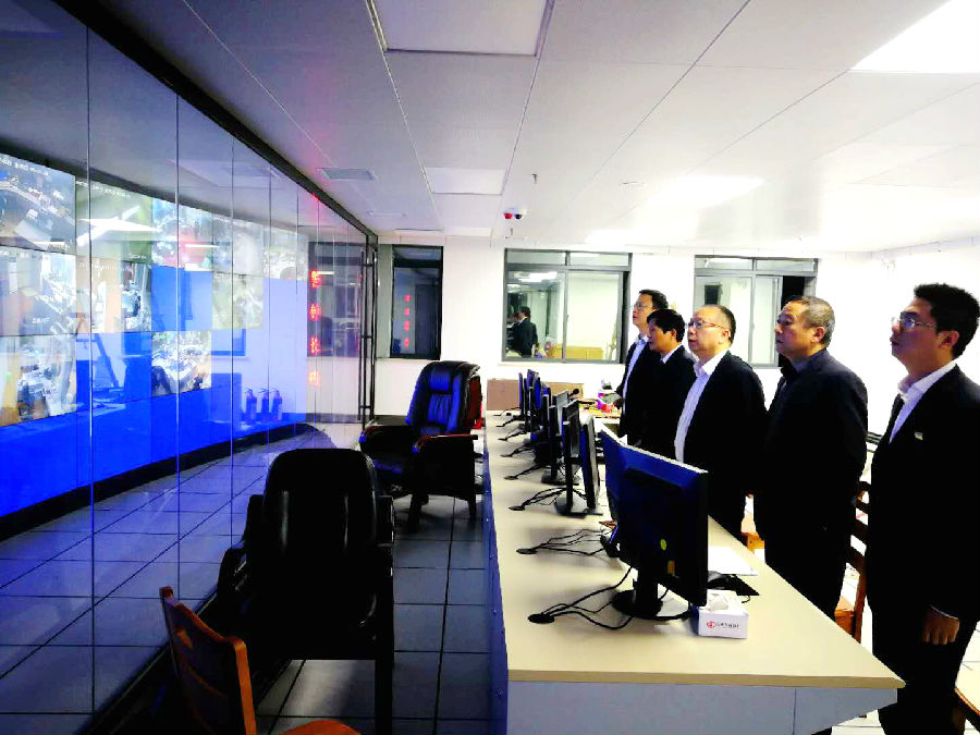 总行领导班子在远程监控中心指挥调度