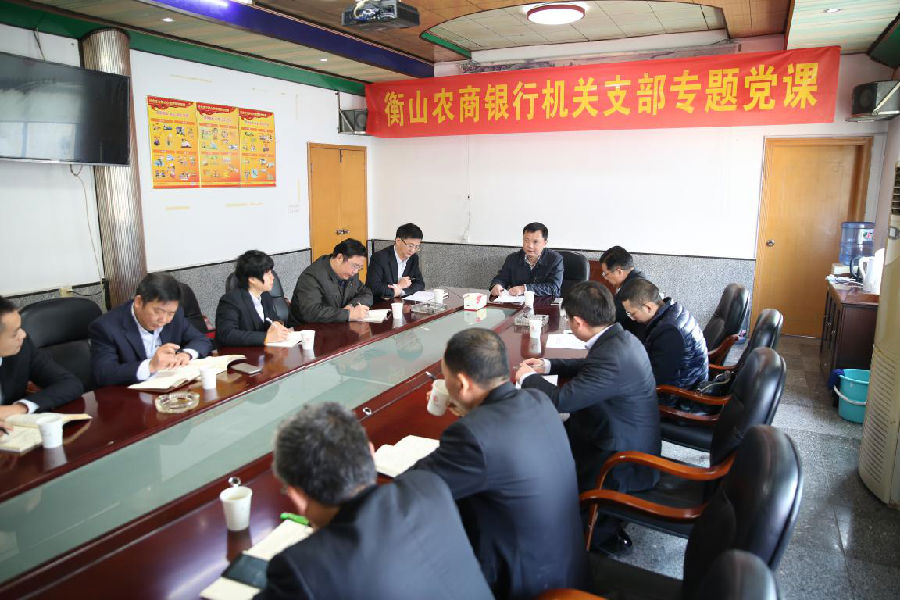 为认真贯彻落实省联社直属机关党委工作会议精神,进一步加强衡阳辖内农商银行党建工作,衡阳办事处党组班子成员于12月8日分赴联系点为基层党员授党课,宣讲党的十九大会议精神。