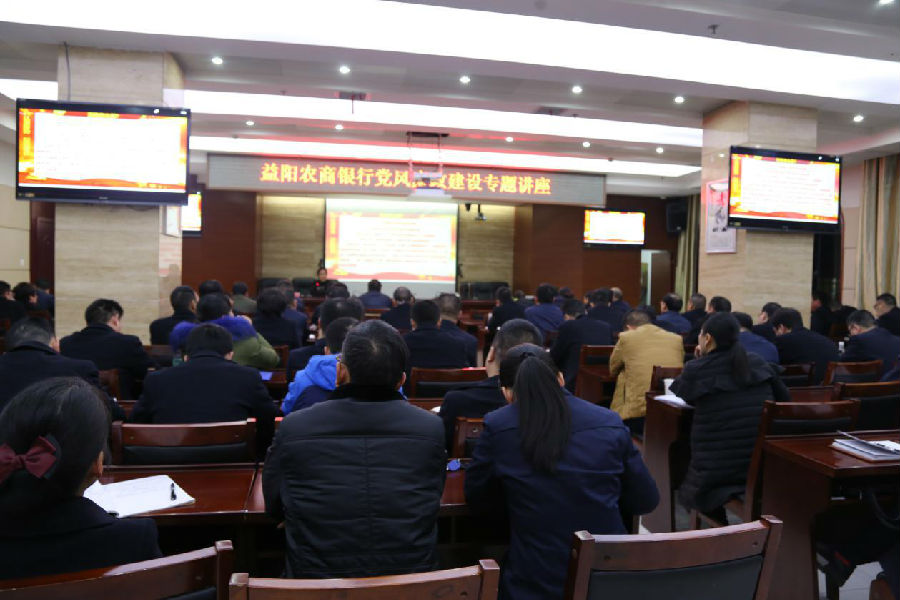 为进一步学习贯彻落实党的十九大会议精神,12月15日晚,益阳农商银行在总行2楼会议室举办了党风廉政建设专题讲座,邀请市纪委常委、监察局副局长符献文同志授课,总行党委班子成员、部室经理、支行正副行长、非支行行长党支部书记、机关全体党员等共100余人参加了学习。