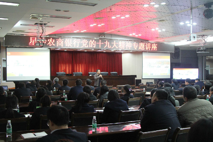 为掀起学习宣传贯彻党的十九大精神热潮,切实把全行党员干部的思想行动统一到中央、省委及省联社党委的决策部署上,12月26日,星沙农商银行组织了一场党的十九大精神专题讲座,讲座采取视频会议进行,全行500余名员工听取了讲座。