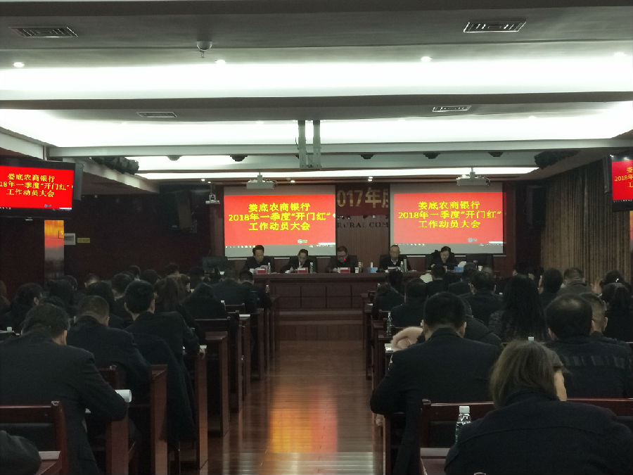 2018年,是娄底农商银行超常规发展的一年,为了进一步加大资金组织力度,抢占市场份额,嬴得全年工作的主动权。元月1日上午8点,该行党委班子组织24个支行正、副行长、客户经理及主管会计、协理员、部室经理100多人在八楼会议室紧锣密鼓召开2018年一季度“开门红”工作动员大会。会议由党委副书记谢行长主持。
