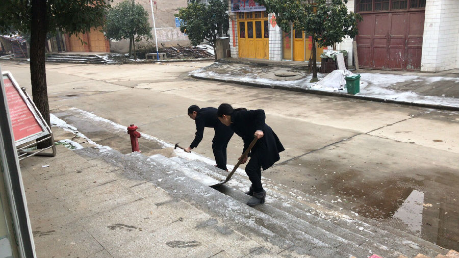 三是保障客户安全。该行各网点对营业厅周遭积雪路段和台阶等进行全面打扫,及时清除道路积水、积雪,并设置安全警示标志、标牌,铺设防滑物等,提示前来办理业务的客户注意安全,并安排大堂经理专门护送办理业务的老人到安全区域。