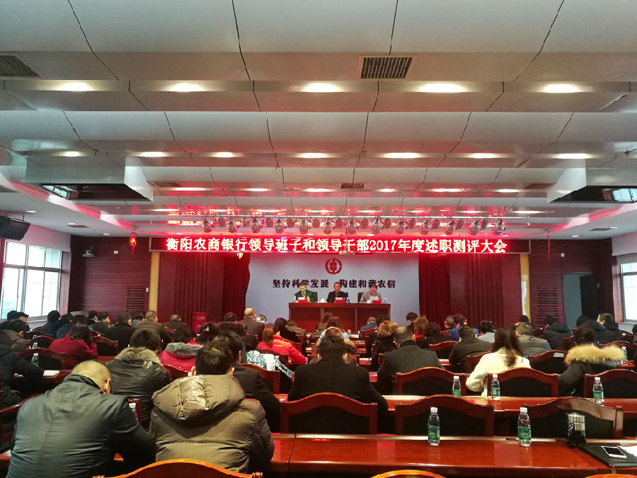 衡阳农商银行党委书记、董事长吕宏忠主持会议,代表班子进行述职和就本年度干部任用做专题报告以及作个人口头述职。党委副书记、行长罗利豪作个人口头述职,其他党委班子成员进行书面述职。会上,与会人员对该行领导班子和成员进行了民主测评,对衡阳农商银行党委2017年度干部选拔任用工作和2017年度新选拔任用的中层干部进行了评议。