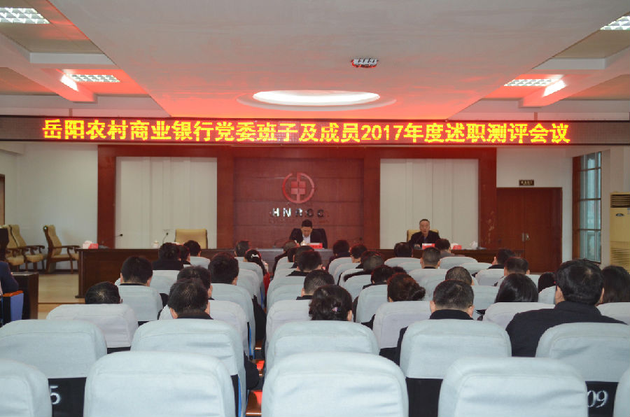 1月25日上午,岳阳农商银行召开党委班子及成员2017年度述职测评会议,办事处党组书记、主任刘汉军出席会议并讲话。岳阳农商银行党委书记、董事长黄亚平主持会议并作个人述职,党委副书记、行长李进,党委委员、监事长宋元喜作书面述职,其他党委班子成员列席会议。