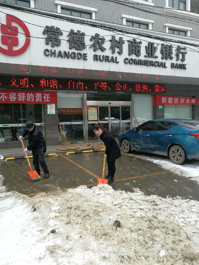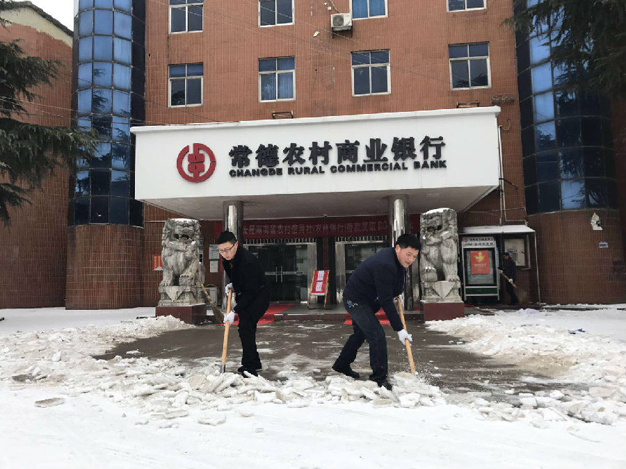 根据常德农商银行总行的统一安排和部署,鼎城支行各部门提前做好应对预案,明确职责分工,加强安全检查,积极应对雨雪冰冻天气。