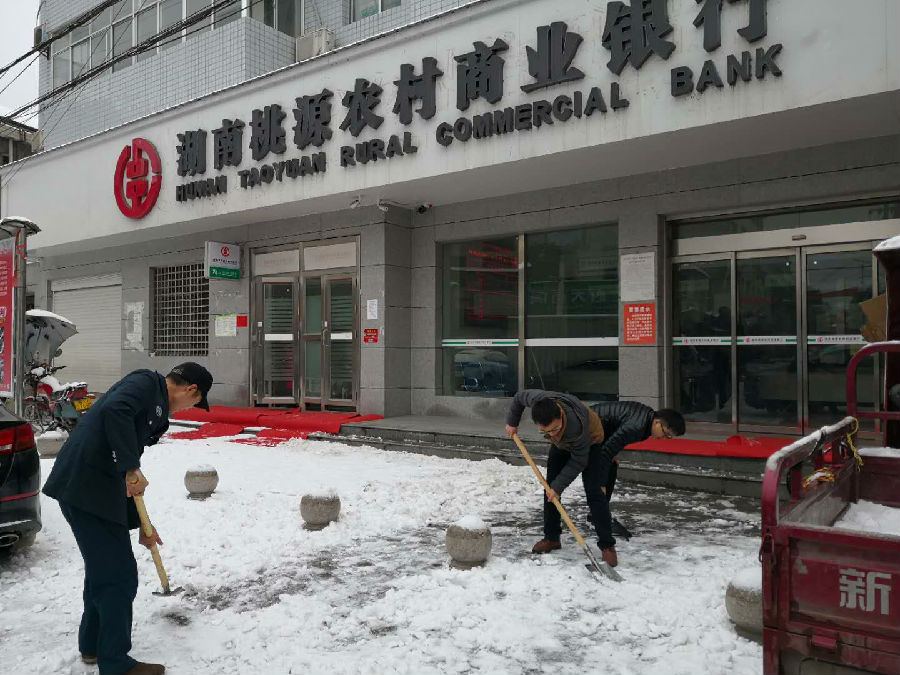 冰雪天气期间在全行长的坐镇下,该支行的一切工作都进行的井井有条,冰雪再大,桃源农商人始终坚守在第一线。