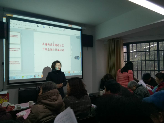 趁着支行员工分发传单的契机,支行行长首先上台为社区居民详细的讲解了金融诈骗的风险以及如何防范金融诈骗的几种方法。岳塘岭社区目前以老人居多,而近年来针对老人的金融诈骗案件又层出不穷,通过我们的讲解,为老人们树立起了防范金融诈骗的初步意识。老人们都听得十分认真,不时点头称赞,表示受益良多。