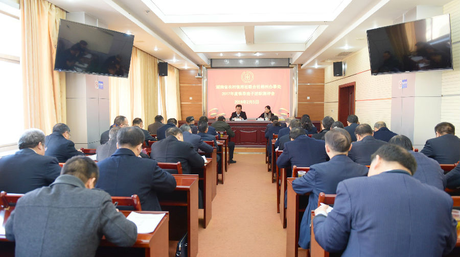 2月5日,郴州办事处组织召开2017年度领导班子成员述职测评会,市办事处党组书记、主任高仕贤主持会议,省联社党委组织部副部长、人力资源部副总经理周剑兰出席会议并作重要讲话。