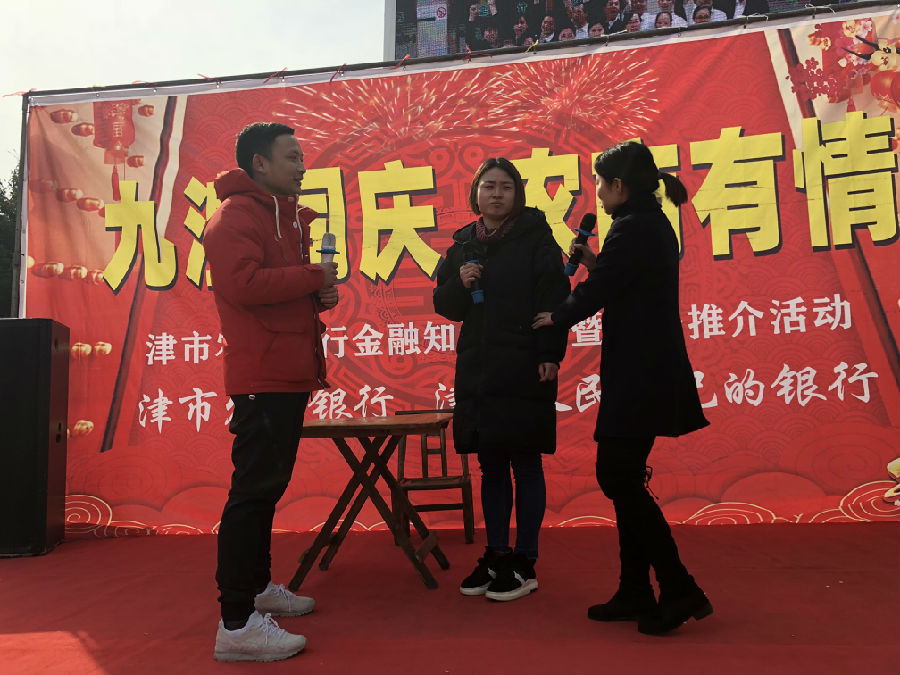 二、活动丰富、寓教于乐。该行把握乡镇居民喜好,将枯燥的金融知识编排成节目,分若干个环节穿插呈现:一是金融知识及产品推广环节,由业务骨干对金融基础知识,重点对防电信诈骗、投资理财、存款利率上浮、福祥便民卡、农户小额信用贷等进行现场讲解和宣传。二是员工表演环节,主要包括歌唱、舞蹈、业务类情景剧等。三是互动游戏环节。由支行员工带领现场观众进行互动游戏,增强现场观众的关注度和参与度。