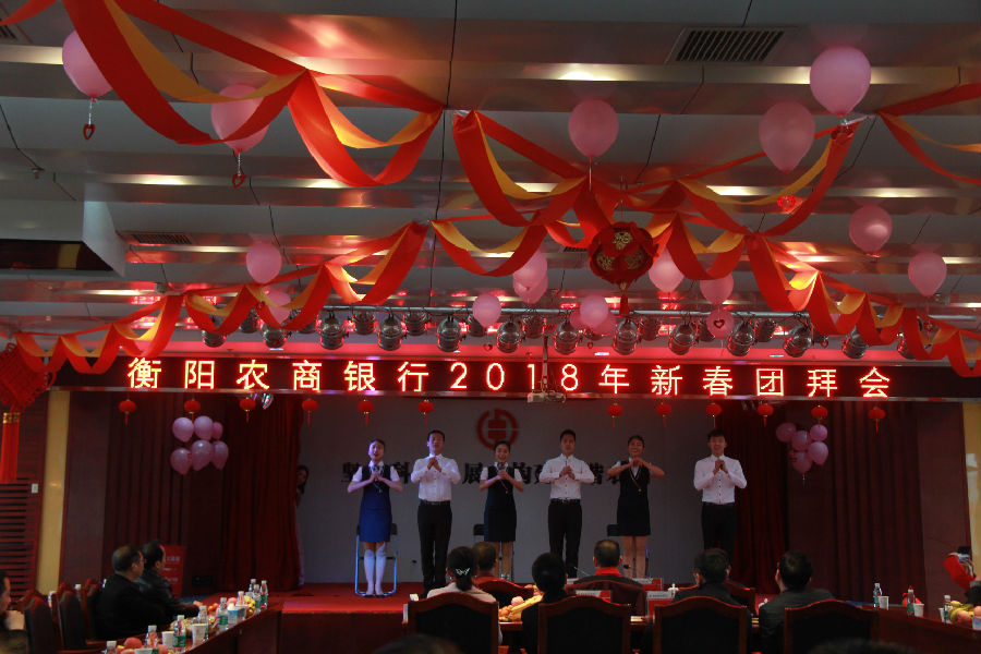 此次新春团拜会,由党委副书记、行长罗利豪主持,各党委班子成员依次向与会的员工们拜年,送去新春的祝福。该行董事长吕宏忠在新春致辞中简要地回顾了全行2017年的工作历程,并对2018年的工作提出了希望和要求。他提出:要不断向“精品银行、标杆银行、上市银行”迈进,努力将衡阳农商银行发展成为“客户服务最佳、股东回报最高、员工福祉最好”的优质现代金融企业,实现“政府满意、监管放心、客户认可、股东增值、员工幸福”企业愿景,为衡阳农商银行的发展努力奋斗。
