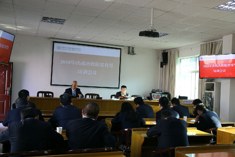 为贯彻落实全县决战决胜脱贫攻坚整县脱贫摘帽动员会议精神,3月23日,靖州农商银行在四楼会议室组织召开了全行决战决胜脱贫攻坚动员会议,并对结对帮扶责任人进行了培训。