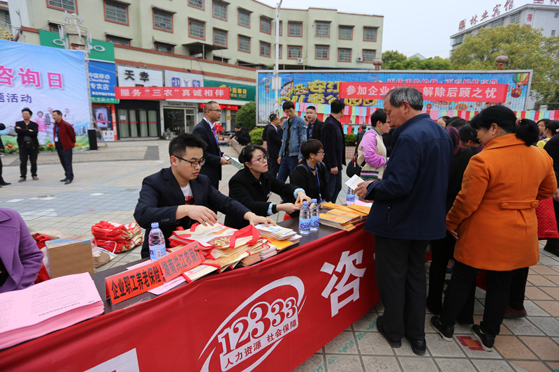 3月30日上午,在12333全国统一咨询日来临之际,洪江农商银行相关人员配合洪江市人力资源和社会保障局在安江镇稻都广场开展了一场大型的“全民参保”有奖答题活动。
