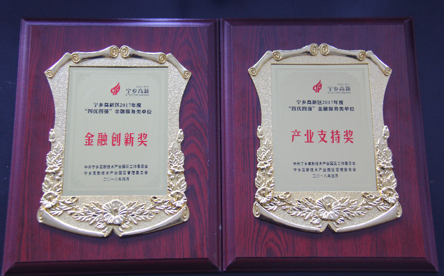 会上,中共宁乡高新技术产业园区工作委员会对2017年度“四优四强”先进企业、先进单位和先进个人进行了表彰,宁乡农商银行荣誉上榜,荣获“金融创新奖”和“产业支持奖”!