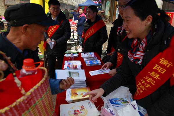 3月5日,由衡阳县联社10余名青年员工组成的第一批青年志愿者服务队来到岘山镇,把“学雷锋,送金融知识下乡” 活动办到了百姓的家门口。