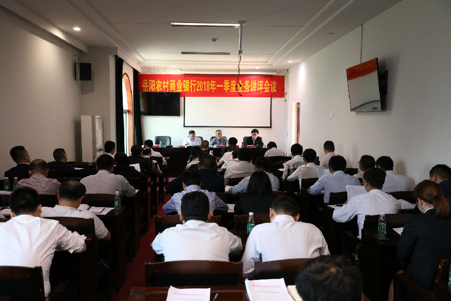 4月18日下午,岳阳农商银行召开2018年一季度工作讲评会议,总行领导班子、各部门负责人、各支行行长共计 52人参加了会议。