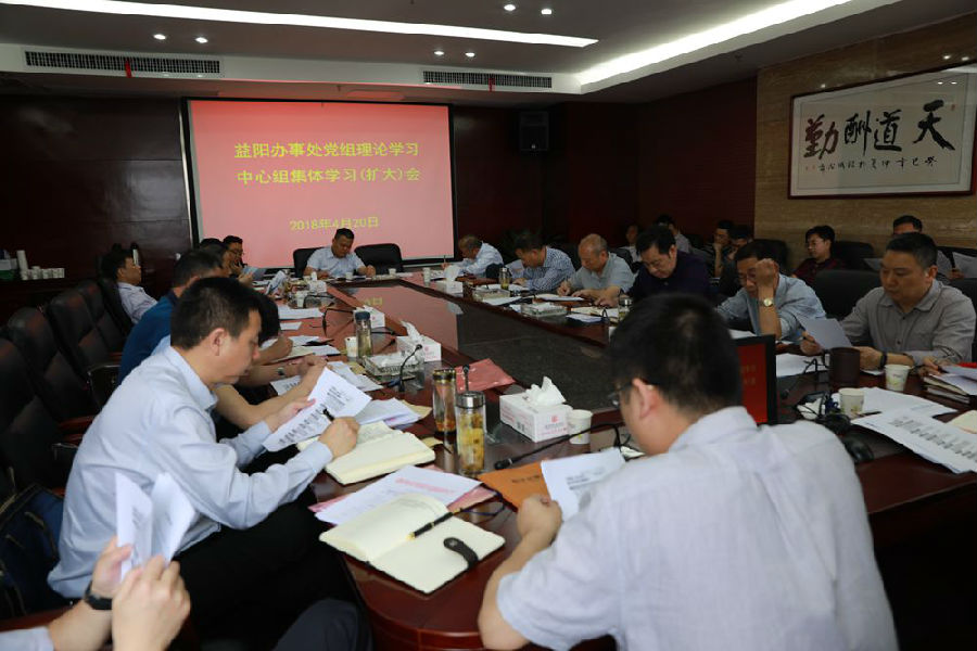 4月20日上午,益阳办事处党组理论学习中心组召开集体学习(扩大)会议。办事处党组成员、各行董事长、行长、监事长、办事处支部全体党员参加会议。