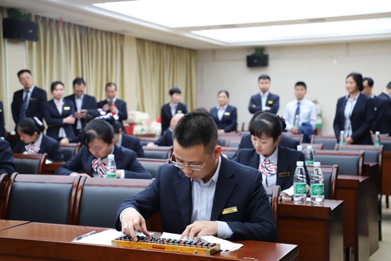 此次业务技能竞赛设置了算盘翻打传票、单指单张点钞、多指多张点钞、计算机键盘输入4个项目。来自总行机关15个部室的36名党员、群众参加竞赛。比赛将评选出每个项目的前三名,代表支部参加全行的业务技能大比武。比赛过程中,参赛选手们精神饱满,热情高涨。传统“看家”算盘计算既快又准,新式花样点钞引人入胜,一双双灵巧的手,在键盘上游走,一行行字符,在电脑屏幕上快速跳动,充分展现了参赛员工娴熟的技能,规范的操作和扎实的基本功。经过激烈角逐,共有12名选手顺利入围4个项目的前三。其中计划财务部总经理朱晓荣摘得算盘翻打传票比赛的桂冠,机关支部副书记陈鹏在单指单张点钞项目中稳拔头筹,运营管理部的段赛英荣获多指多张点钞比赛的第一名,零售业务部的黄婵婵荣获计算机键盘输入比赛的第一名。