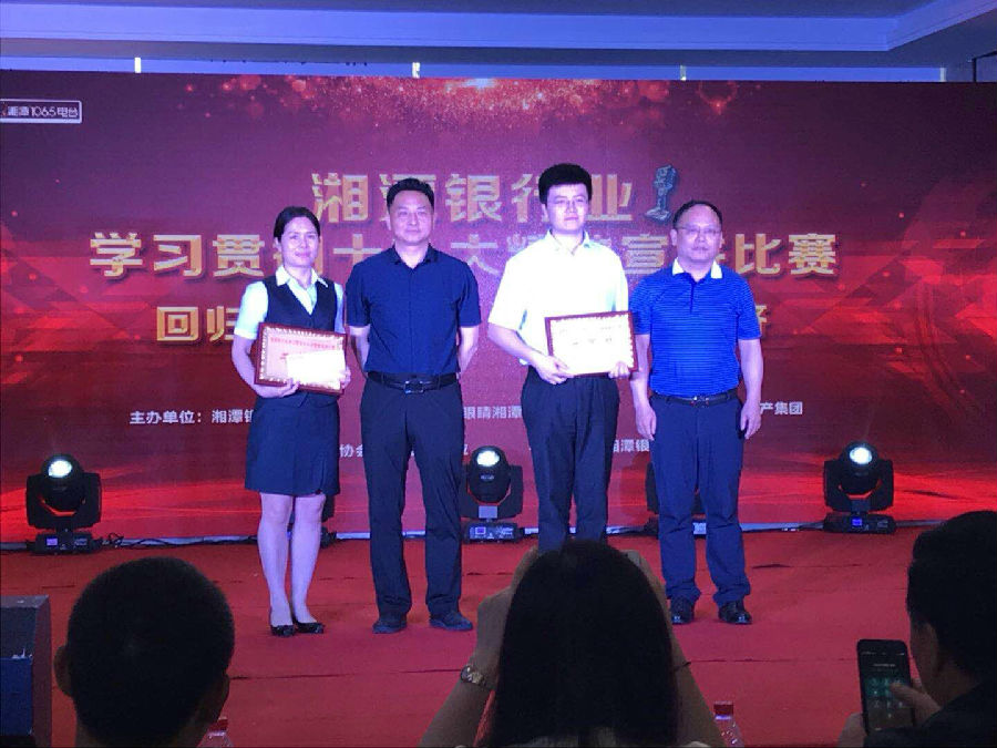5月6日下午,湘潭银行业贯彻十九大精神宣讲比赛圆满落幕,据悉,此次比赛所有湘潭银行业法人机构共计26支队伍参赛,节目形式多样,丰富多彩,韶山农商银行说唱快板节目《我们的新时代》脱颖而出,荣获二等奖。