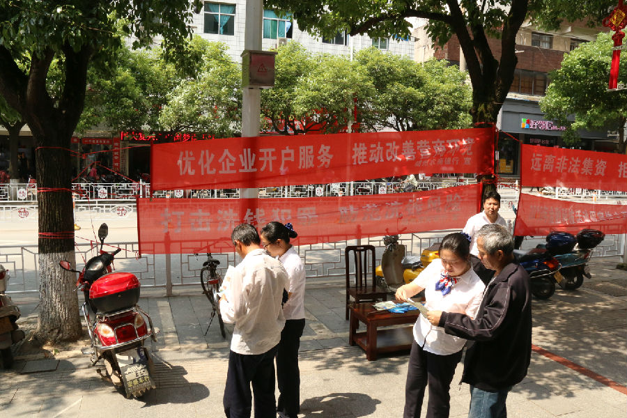 5月18日,根据省联社下发的《关于组织开展湖南省农村信用社优化企业开户服务宣传活动的通知》(湘信联办【2018】58号文件),转发的《关于在2018年全国科技活动周期间开展相关工作的通知》(湘信联办【2018】90号文件)和《关于组织开展2018年防范非法集资宣传教育工作的通知》(湘信联办【2018】92号文件),靖州农商银行特意成立了以分管副行长为组长的宣传工作小组,综合管理办公室为宣传工作小组办公室,负责此次活动的策划、组织、总结等相关工作,在飞山支行进行集中宣传。