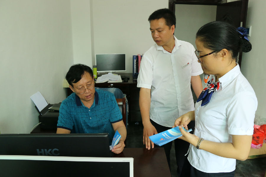 工作人员走进靖州县异溪茯苓责任有限公司做优化企业开户宣传