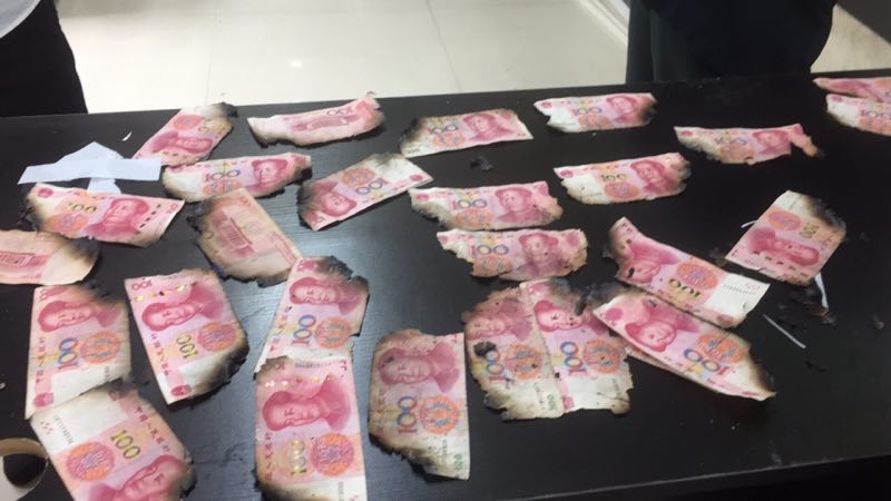 上午十点半左右,有位40岁左右的中年人面有难色的来到营业大厅。只见他拿出一包黑乎乎的东西,我们走近一看,竟是一沓被烧焦的纸币。经由他诉说和拿出的村委会证明,我们得知原来这些钱是这位客户母亲的。由于一场大火,使得这些纸币都被烧得缺角,且和包内的胶状物质黏在一起了。因为残币都黏在一起了,在清分过程中,很容易造成二次损坏。另外,在残币破损处的碳化物质极易脱落,而按要求,纸币只有在受损面积不超过1/4时,才能全额兑换。这种情况下冒然接下这笔业务,若是出现什么问题,极易引发我们与客户的纠纷。看到中年客户困惑焦急的样子,在清分中心叔叔阿姨的积极沟通下,这位客户答应了在窗口外的营业大厅内由我们的工作人员和他一起先将残币一张张的清分出来,摆在办公桌上。然后,再将残币的破损部分用白纸补齐,这样才好计算破损面积。就这样,叔叔阿姨们通过耐心细致的清理和对破损币兑换政策的宣传解释,一直忙到1点多钟才清理完毕。期间,她们还特意从食堂里端了一碗热腾腾的饭给这位客户。最后,这位客户的残币终于按要求兑换完毕,他对我们农商银行的服务态度感到非常满意,不断地向我们表示感谢。