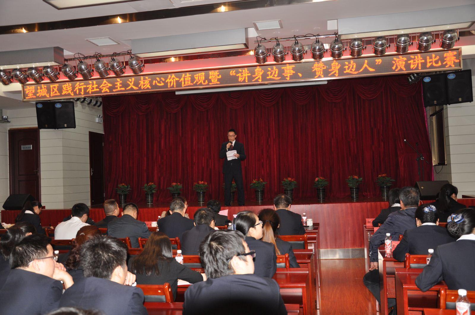 4月3日,望城农村商业银行举行了践行社会主义核心价值观暨“讲身边事、赞身边人”演讲比赛。全行350多名员工到场观赛。