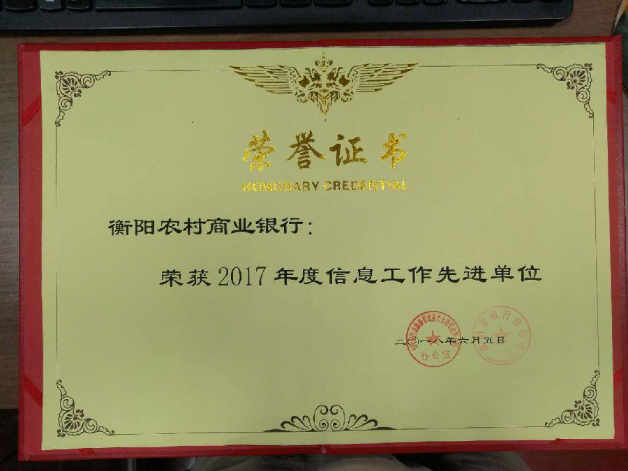 近日,衡阳市银行业协会对2017年度全市银行系统信息工作先进单位和先进工作者进行表彰,衡阳农商银行荣获2017年度信息工作先进单位。